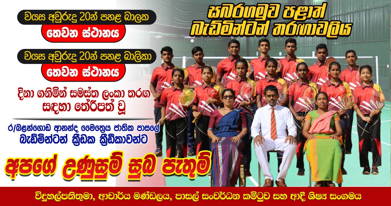 සබරගමුව පළාත් බැඩ්මිටන් තරගාවලිය...